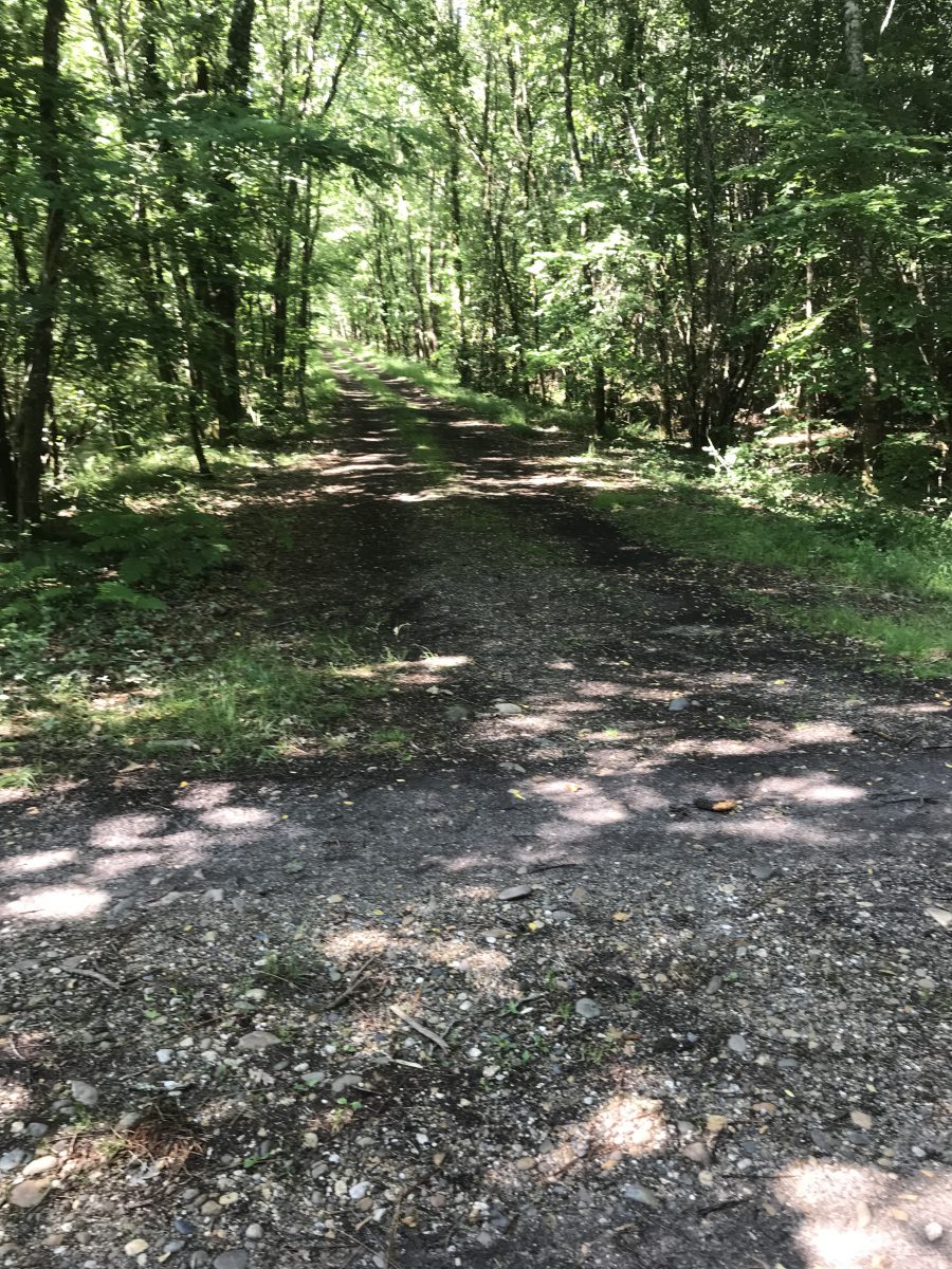 Dat klinkt als een hele chique banque: Bourriot-Beegonce, waar men alleen terecht kan met een vermogen van tenminste 8 cijfers voor de komma, maar het is een piepklein dorpje met een bar-tabac (vandaag, zaterdag, gesloten), en verder niets. De weg ernaar toe is eerst een stukje als gisteren, kaarsrecht met prima asfalt waar je echt goed op loopt. Na een tijdje gewoon een vrijwel rechte lijn door het bos, zonder asfalt. Dat loopt eigenlijk beter.